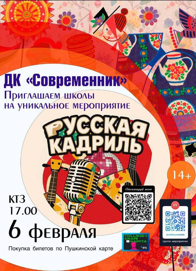 Собирайте команду, приходите на «Русскую кадриль» и покажите, какая школа самая дружная и яркая! Пой, танцуй, побеждай!