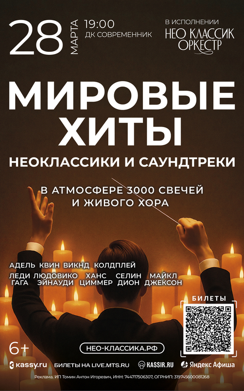 Мировые хиты НЕОКЛАССИКА атмосфера 3000 тысяч свечей и живого хора