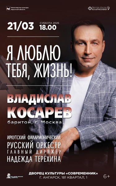 Концерт «Я люблю тебя, жизнь!» с Владиславом Косаревым и Иркутским филармоническим русским оркестром!